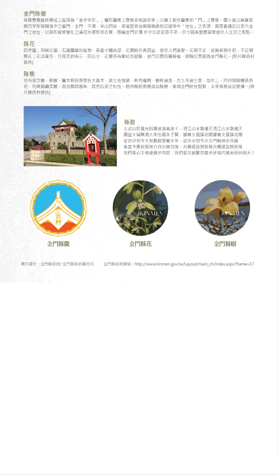各地最新行程已更新,歡迎至左方各館查看~~ 飽覽戰地風光,走訪歷史古蹟,感受祭祀風獅爺的虔誠,一起來金門體驗最具特色的地方文化。/ 欣賞自然景致,遊覽歷史古蹟,大啖美味海鮮,秋冬遊澎湖,不熱更樂~/ 來趟浪漫追淚之旅吧!被CNN列為世界15大奇景之一的「藍眼淚」就在馬祖,藍眼淚體驗館讓您隨時皆可觀賞這浪漫奇景!/意者請洽:高雄/07-2152000 台北/02-25045885